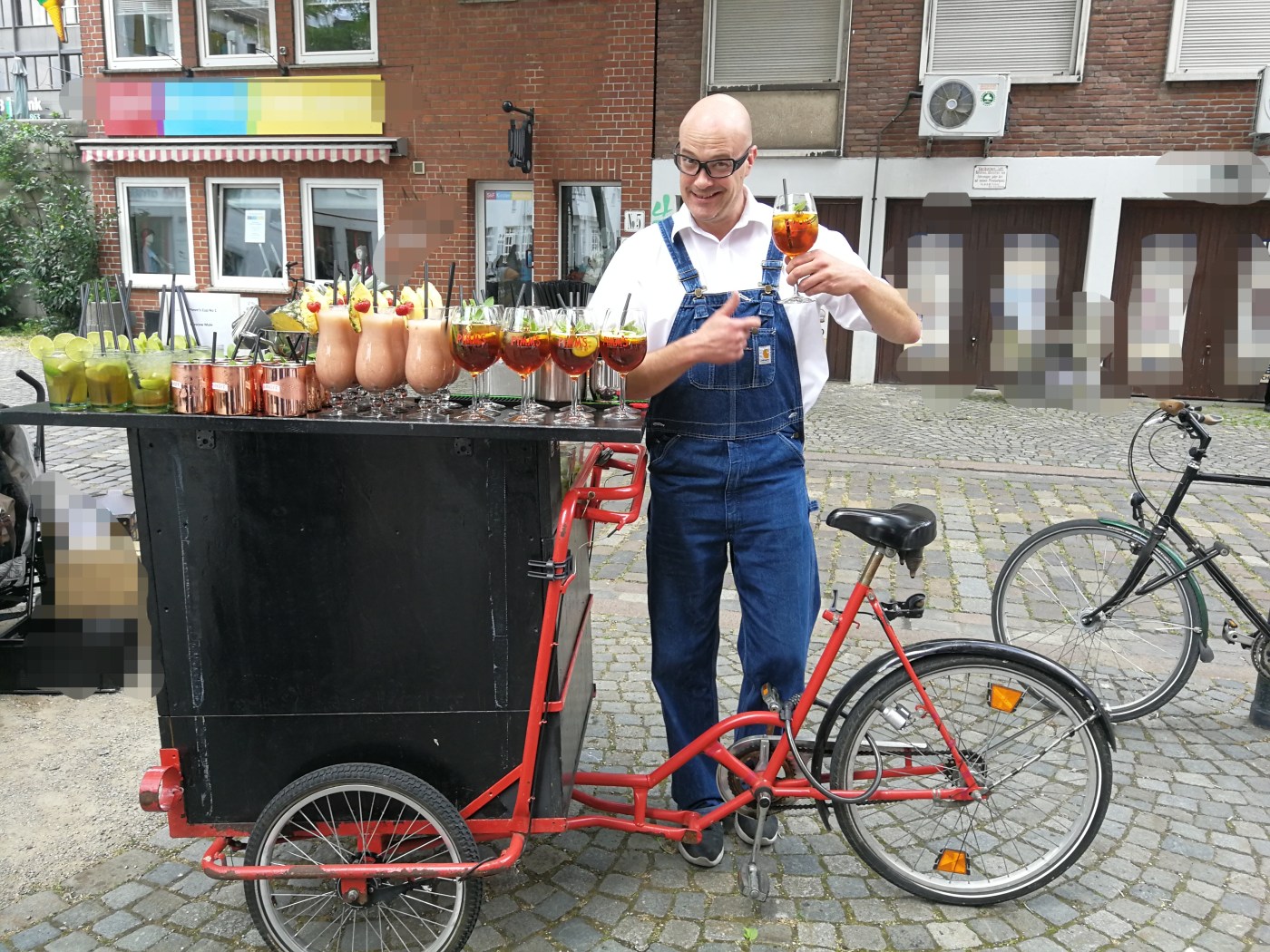 Ich begleite euch mit dem Cocktail-Bike und zaubere euch unterwegs leckere Drinks.